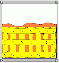 Das Anheften diagonal eingesteckter Bretter ist nicht immer möglich. Deshalb sollte auf diese Sicherungsvariante ganz verzichtet werden. Für relativ leichte Ladungen eignen sich waagerecht eingepasste Bretter oder Holzgatter. Bei mittelschweren Gütern sind Riegel aus 5 cm x 8 cm messenden Hölzern oder Kanthölzern die bessere Lösung. Für schwerere Ladungen sind fachmännische Absteifungen zu bauen. |