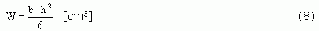 The employed timber or steel beams are subject to bending and must therefore have a sufficient section modulus. The section modulus W of a timber beam with rectangular cross-section of the width b and the height h has the value: