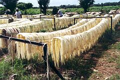 Table 30: Water contents of some natural fibers Natural fibers must be protected from all forms of moisture, whether excessive humidity or seawater, rain or condensation water, in order to prevent decay, discoloration, mold, mildew stains and rot. When exposed to moisture, fibers tend to discolor rapidly, ultimately turning black, they assume a musty odor and become moldy and mildewed; they lose tensile strength and elasticity and, to a greater or lesser degree, become susceptible to decay. Where bales are strapped with steel straps or wires, corrosion and consequently rust damage may occur. ![]()