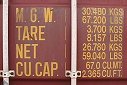 One possible optional operational marking which most operators do affix states maximum payload or net cargo weight, which is the difference between the maximum gross weight and the tare weight of a container. Although this marking is optional, the standard does stipulate that the weight labeled NET be given first in kilograms and then in pounds. In general, the various markings are so arranged that the weight data are followed by container volume data.