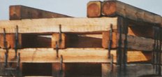 cross-stacking of balks (with errors, in this case: no overhang, dogs attached incorrectly) |