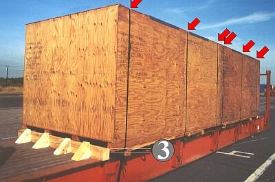 Two plywood cases on a 40' flatrack Without performing any calculations, it is obvious that the securing means provided are inadequate.
