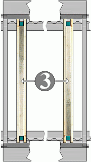 The small case is secured by building a small lattice from two vertical and two transverse boards and positioning it against the case end wall. Squared lumber is fitted between this lattice and the one against the flatrack end wall. To provide lateral securing, squared lumber is additionally threaded through and fitted next to the case. |