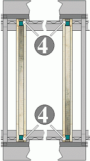 Squared lumber pieces (4) are fitted precisely in the crosswise direction or squared lumber is fitted in the lengthwise direction (5) between the internal edge of the plant part and the external edge of the steel profile or stanchion and in each case fastened to the beams beneath. The squared lumber at (4) is loaded against the end grain, i.e. end on to the grain. A maximum securing load of 400 daN per square centimeter of effective supporting surface area may therefore be expected. The squared lumber at (5) is loaded perpendicularly to the grain. In this case, an effective supporting surface area of only 30 daN per square centimeter can be expected.