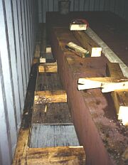The depth of the members for transferring forces to the container side walls can be improved in this way. If two 10 cm x 10 cm wooden members are positioned in each case against the container side walls instead of the singly positioned 14 cm x 14 cm wooden members, this depth is increased to 20 cm and flexural strength is improved. However, this increases labor costs, because the number of cross braces to be fitted is doubled.