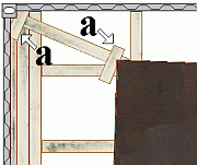 Notches are cut in the additional wooden members (a). The wooden members are placed against the corner posts and the corners of the slabs and the space between is braced with the oblique stays. Since these wooden members are loaded perpendicularly to the grain, for the purposes of calculation they can only be assumed to withstand loads of 30 daN per cm². Directly applied wooden members, which are loaded on the end grain, i.e. parallel to the grain, can be assumed for the purposes of calculation to withstand loads of 100 daN per square centimeter of cross-sectional area.